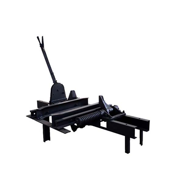 此阻車器為阻輪式阻車器,是礦井車場中將運行的礦車停止在某一個固定點的限位裝置,主要由一對阻爪和彈簧緩沖裝置等組成。阻爪打開時,礦車可自由通過;阻爪關閉時即阻擋住礦車車輪,是礦車停停止前進。阻車器可分為單式和復式兩種。復式阻車器即兩個聯動的單式阻車器,相互動作閉鎖,除停止礦車外,還起分解礦車的作用。